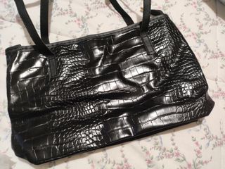 Mala de senhora com um acabamento texturizado que imita pele de crocodilo. - Material: Pele sintética. - Cor: Preto. - Design: Textura de crocodilo.