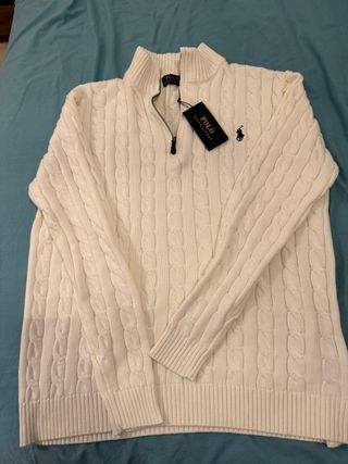 Malha de quartzo-zip da Polo Ralph Lauren em branco. Peça clássica com um design elegante. - Padrão de trança. - Gola alta. - Fecho de quartzo. - Logo bordado.