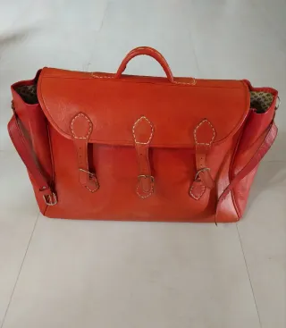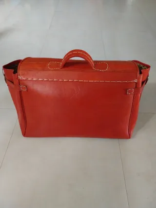 Vendo mala ou bolsa de viagem grande antiga em couro vermelho. Está em bom estado e mede 50 cm`s de largura, 40 cm`s de altura e 25 cm`s de espessura.