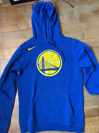 Camisola com capuz e bolso frontal, inspirada na equipa dos Warriors. - Logo da equipa estampado no peito. - Swoosh da Nike no lado esquerdo do peito. - Capuz ajustável com cordões.