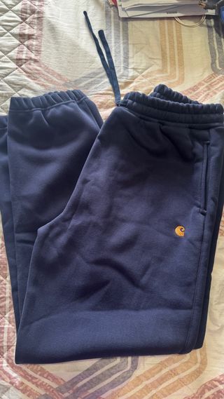 Calças de treino Carhartt em azul marinho, tamanho L. Novas, nunca usadas. - Logo Carhartt bordado. - Cordão ajustável na cintura. - Tecido confortável.