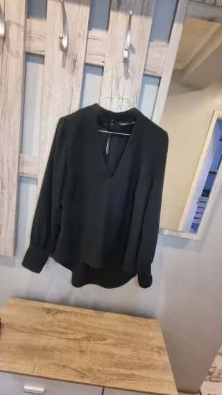 Blusa elegante da Zara. - Decote em V. - Mangas compridas com punhos. - Corte moderno e fluido. Os encaixes para os botões precisam de ser cosidos.