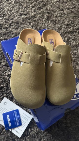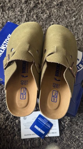 Socas Birkenstock em pele. - Cor verde oliva. - Tamanho 40.