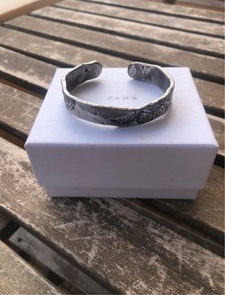 Pulseira da Zara. Esta pulseira tem um design rústico e elegante. - Feita em metal. - Apresenta um padrão floral discreto. - É uma peça única e estilosa.