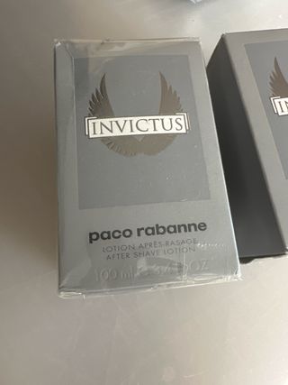 Loção pós-barba Paco Rabanne Invictus. - Fragrância refrescante e amadeirada. - Embalagem de 100 ml. - Produto novo mas aberto, de exposição de loja.