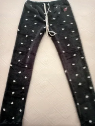 Pijama confortável com estampa de gato. - Mangas brancas com bolinhas pretas. - Detalhe de orelhas e cauda de gato. - Fecho com botões na gola.