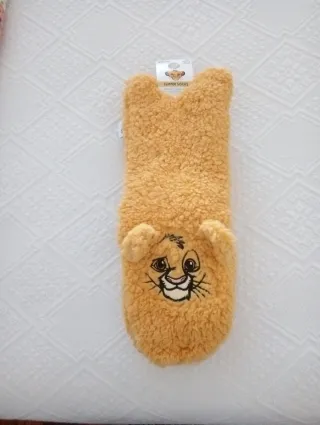 Meias quentes e confortáveis com o personagem Simbad da Disney. - Material macio e felpudo. - Design divertido com o rosto do Simbad. - Tamanho único para maior praticidade.