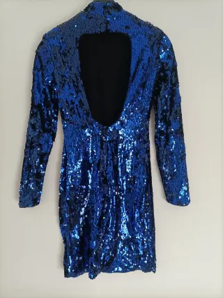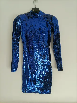 Vestido justo e curto de noite azul de lantejoulas
