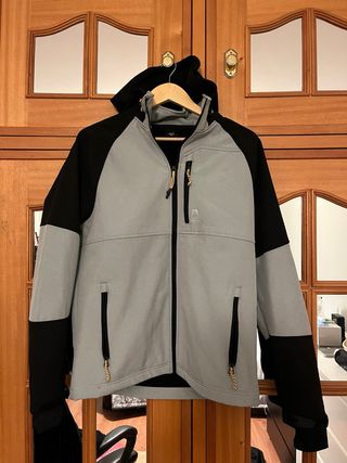 Casaco com capuz, ideal para atividades ao ar livre. Possui um design moderno e prático. - Fecho frontal. - Forro interior em malha. - Logo da marca em destaque.