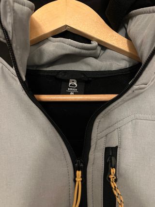 Casaco da marca Boriken com um design moderno. - Combinação de cores preto e cinza. - Capuz integrado. - Fecho frontal. - Bolsos com fecho.