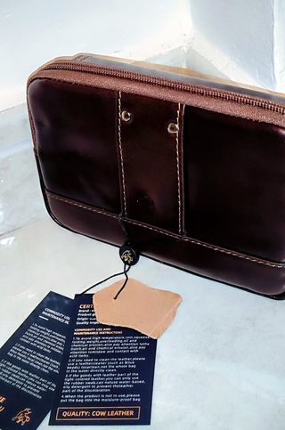 Bolsa de pele genuína da marca Bullcaptain. - Cor castanha. - Design elegante e moderno.