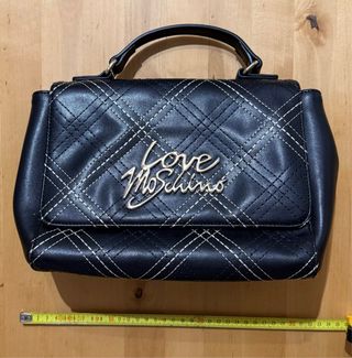 Mala preta da Love Moschino com um design acolchoado e detalhes em pesponto. - Logo Love Moschino em metal. - Alça de mão e alça transversal. - Fecho em aba.