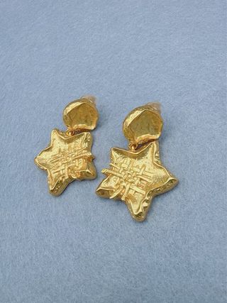 Brincos vintage da icónica marca Christian Lacroix. Um acessório statement com um design único. - Design em forma de estrela. - Fecho de pressão. - Acabamento dourado texturizado.
