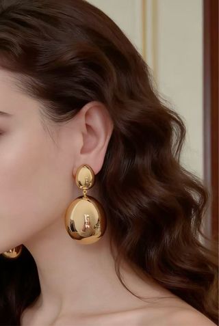 Brincos elegantes com um design de gota dupla. - Acabamento em dourado. - Design moderno e sofisticado.
