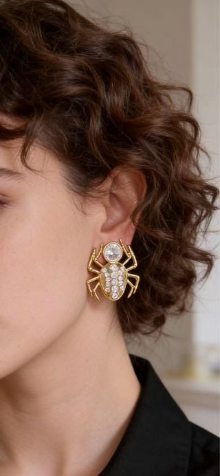 Alessandra Rich gold-tone spider clip-on earrings, embellished with clear crystals. Clip-on style (no piercing needed). Good pre-owned condition.