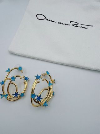 Brincos Oscar de la Renta Flor Esmalte Azul