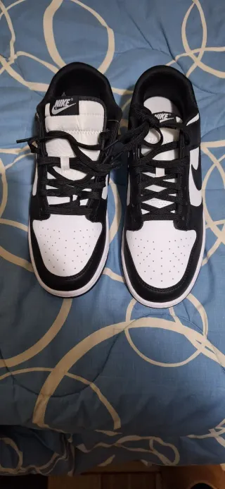 Par de sapatilhas Nike com um design clássico. - Combinação de cores preta e branca. - Detalhes perfurados na biqueira.