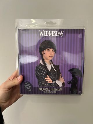 Peruca inspirada na personagem Wednesday Addams. - Design fiel à personagem. - Ideal para festas temáticas ou fantasias de carnaval
