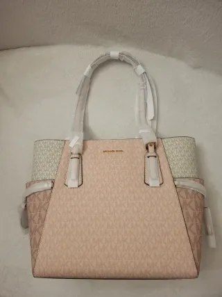 Mala Michael Kors modelo Voyager. - Design com padrão MK. - Combinação de cores bege e rosa. - Nova e com etiquetas. - Espaçosa e Elegante.