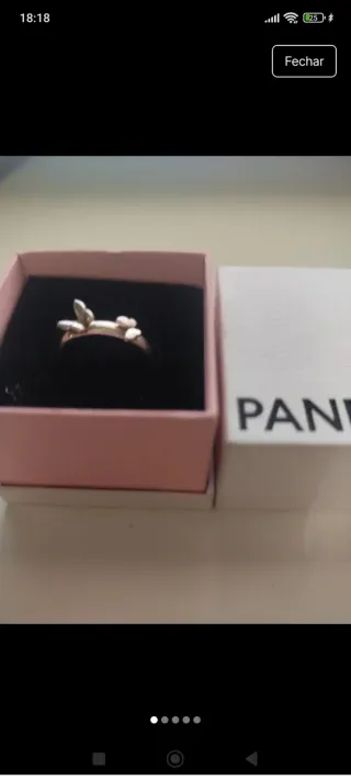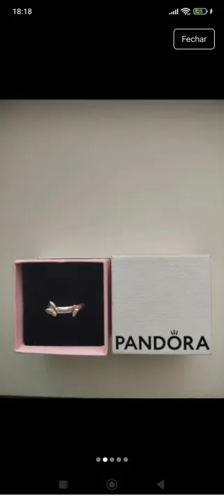 Anel Pandora em tom prateado, em excelente estado. - Design delicado com detalhes. - Caixa original incluída.
