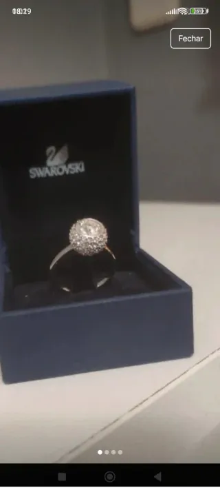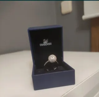 Anel Swarovski deslumbrante, nunca usado. - Design elegante e moderno. - Acabamento em prata brilhante. - Caixa original incluída.