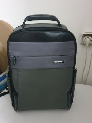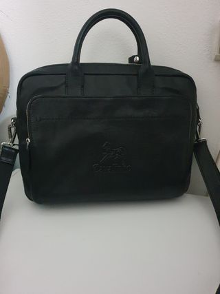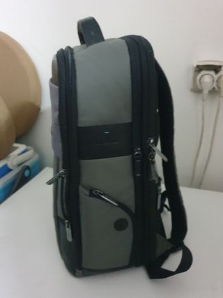 Mochila preta com um design moderno e sofisticado. - Bolso frontal com detalhe dourado. - Alça de mão superior. - Fecho em zíper.