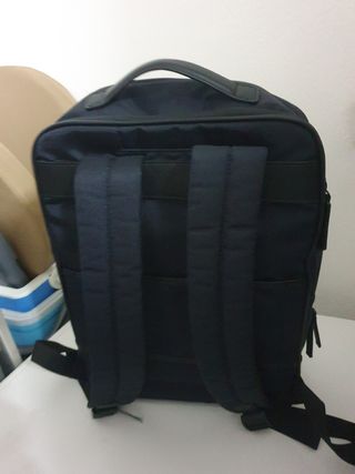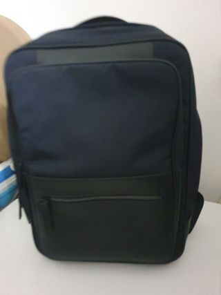 Mochila prática e estilosa, perfeita para o dia a dia. - Material principal em lona resistente. - Detalhes em couro genuíno. - Fecho de correr. - Alça de mão superior.