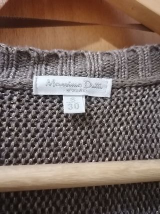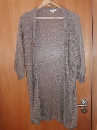 Casaco comprido de malha de boa qualidade, Massimo Dutti, castanho com fios dourados, quente confortável.