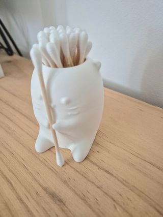 Gatinho Porta Cotonetes - Fofinho e Funcional 🐱 Organize seus cotonetes com estilo com este lindo porta-cotonetes em formato de gatinho! 📏 Tamanho: 7 cm altura 🎨 Cor: Branco 🚚 Envio rápido! Adote esse gatinho organizador e traga mais fofura para sua rotina! 🐾💖