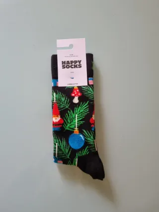 Meias Happy Socks com tema de Natal. - Padrão com gnomos, cogumelos e bolas de Natal. - Composição em algodão. - Tamanho 41-46.