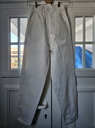 Calças de ganga H&M em tom azul claro. Um clássico versátil para o dia a dia. - Cintura com fecho de botões. - Bolsos frontais e traseiros. - Corte slim fit.