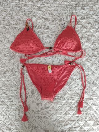 Biquíni coral novo com todas as etiquetas e proteções higiénicas Tamanho parte de cima: M Tamanho parte de baixo: S Marca: Kiabi Preço: 16€ (parte de cima custou 12€ e parte de baixo custou 6€)