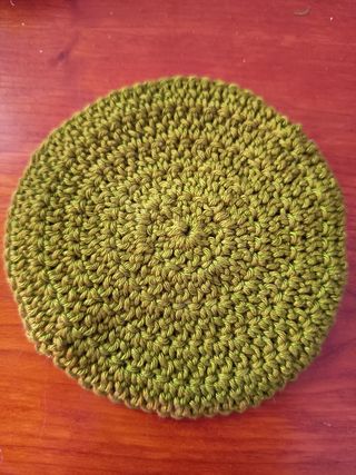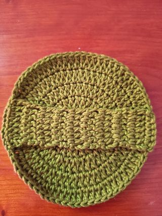 Disco de limpeza feito à mão em crochê, ideal para o corpo. - Material em 100% algodão. - Cor verde oliva.