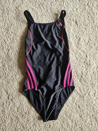 Fato de banho desportivo com um design moderno. - Detalhes em rosa nas laterais. - Logótipo da Adidas em rosa no peito.
