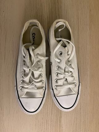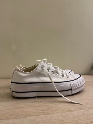 Tênis Converse All Star plataforma em branco. Um clássico reinventado para um visual moderno. - Design de cano baixo. - Sola plataforma alta. - Usados 1 vez.