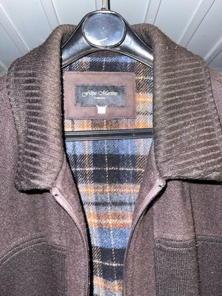 Casaco quente ideal para dias frios. Possui um forro xadrez que adiciona um toque de estilo. Algum borboto nas mangas mas otimo estado