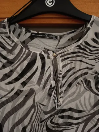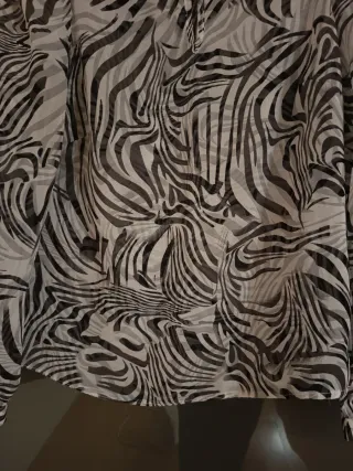 Blusa com um padrão de zebra ousado e elegante. - Tecido leve e fluido. - Design com decote em V. - Mangas compridas.