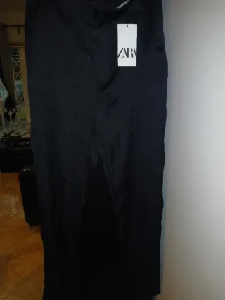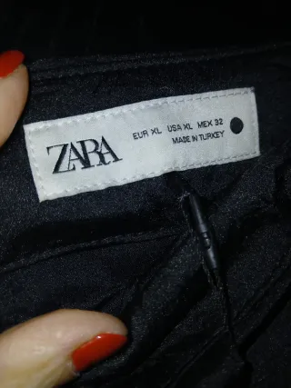 Calças pirata, marca Zara, em ganga azul escuro. - Cintura subida. - Bolsos frontais e traseiros. - Fecho de botão e fecho éclair.