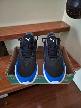 Sapatilhas Puma BMW MMS Tiburion Logo Jr. Novas, com Caixa e Etiquetas. - Design moderno com detalhes em azul e cinza. - Logo BMW M Motorsport na lateral. - Sola branca com detalhes em vermelho.