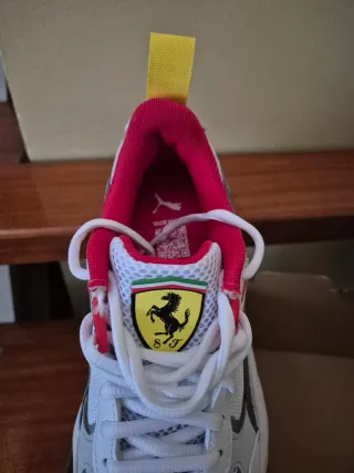 Sapatilhas Puma Ferrari Trinity Jr. Novas, com Caixa e etiquetas - Design inspirado na Ferrari. - Detalhes em vermelho e branco. - Logo Puma na palmilha. - Etiqueta amarela na língua.