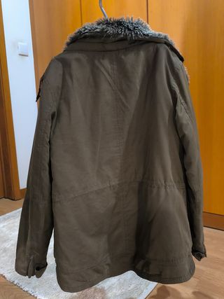 Casaco quente da marca Pull&Bear, ideal para os dias mais frios. - Gola com pelo sintético. - Fecho frontal. - Bolsos laterais.