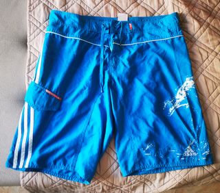 Calções de Praia Marca: Adidas Tamanho: M Material: Poliéster Cor: Azul Pouco usado.