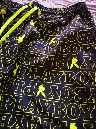 Calções de Praia Play Boy Marca: Tezenis Tamanho: XL Material: Poliéster Cor: Preto / Verde Fluorescente Usado uma vez.