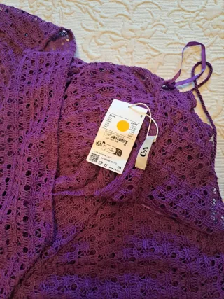 Casaco da C&A, em tom roxo vibrante e com um design em crochet moderno. Peça nova, ainda com a etiqueta original. - Design em crochet - Cor roxa - Novo com etiqueta