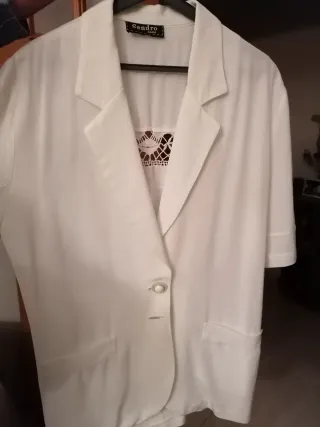 Camisa elegante de manga curta com um detalhe de bordado. - Marca Sandro - Cor branca - Detalhe de bordado na parte das cotas - Manga curta