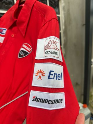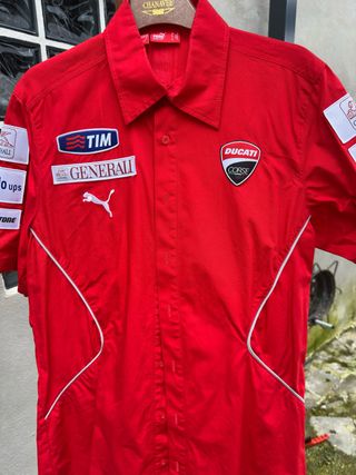 Camisa oficial da Ducati Corse, com design moderno e detalhes de patrocinadores. - Logo da Ducati Corse em destaque. - Patch da Puma. - Patrocinadores TIM e Generali. - Detalhes em branco nas laterais.