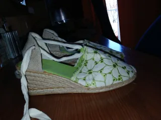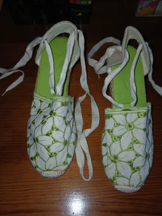 Alpercatas com um bonito padrão floral. - Design floral bordado. - Tiras para atar ao tornozelo. - Sola em espadrille.