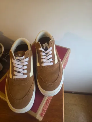 Tênis Vans Brooklyn LS em camurça marrom com detalhes em branco. Perfeito para o dia a dia. - Material: Camurça - Cor: Marrom e branco - Fechamento: Cadarço