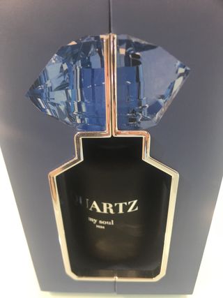 Fragrância QUARTZ my soul HIM, com um design inspirado em um cristal. - Frasco com detalhes em prata. - Aroma marcante.
