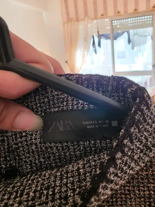 Vestido Zara com um design elegante. - Parte superior em tecido texturizado. - Parte inferior em tecido liso. - Gola alta. - Manga curta.